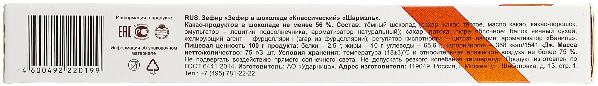 Зефир Шармэль Классический в шоколаде 75г Ударница