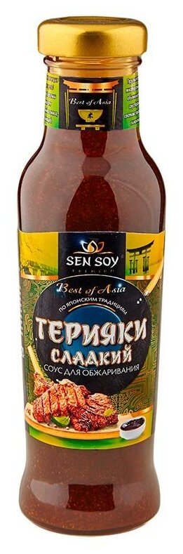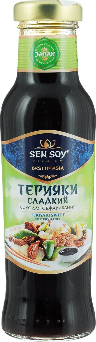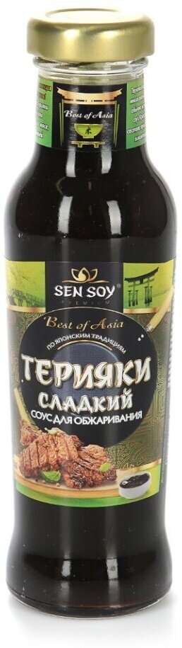 Соус Sen Soy Терияки сладкий 320г сделан на основе соевого соуса с добавлением рисового уксуса, сухого красного вина, свежего чеснока и других пряностей азиатской кухни. Собственно терияки называют способ обжаривания продуктов "до блеска" с использованием одноименного маринада. Курицу, рыбу, морепродукты или мясо необходимо сначала замариновать в нем, а затем обжарить на сильном огне, периодически смазывая им же каждую сторону. Таким образом ваше блюдо приобретет неповторимый вкус и блестящую глянцевую поверхность.