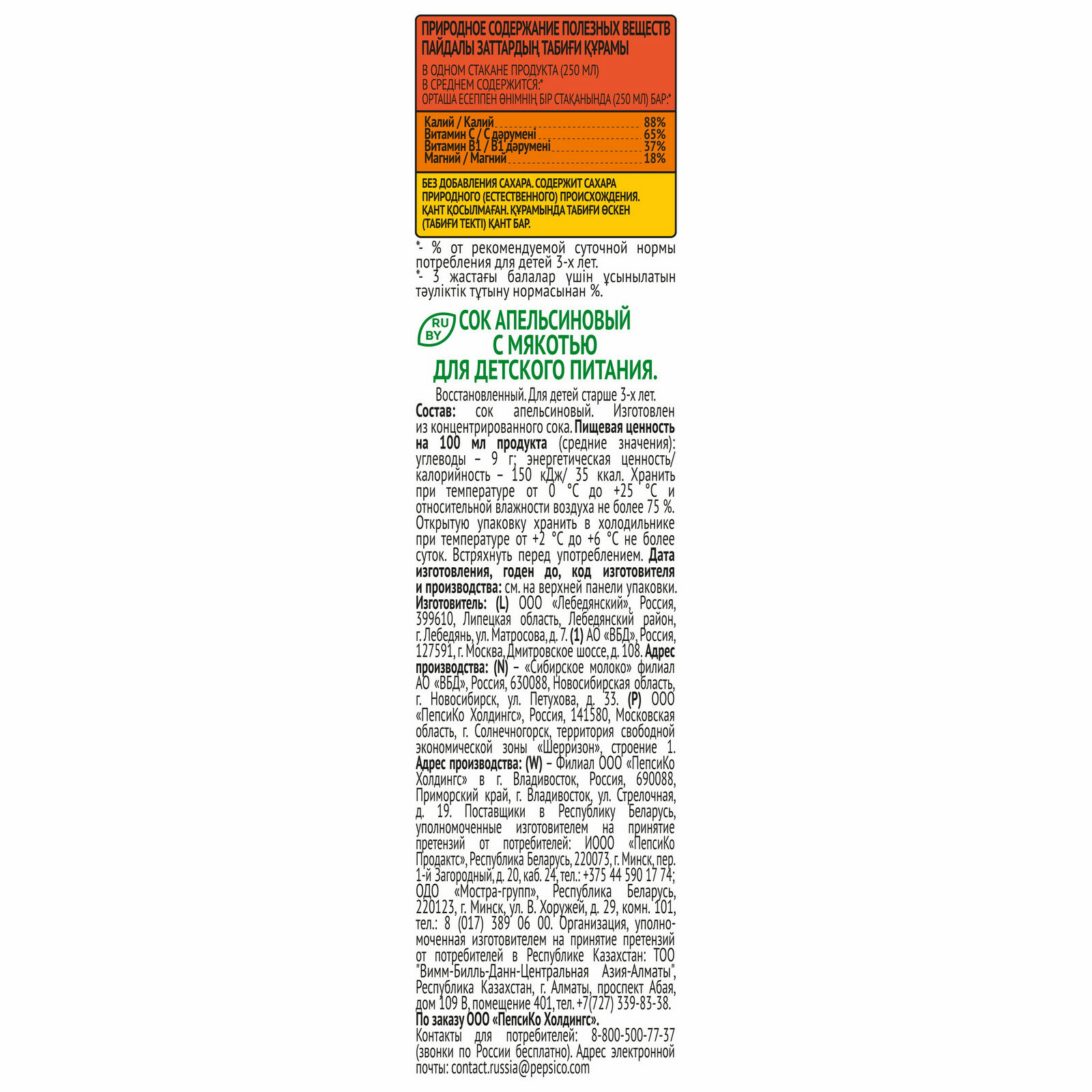 | Состав | восстановленный апельсиновый сок с мякотью |