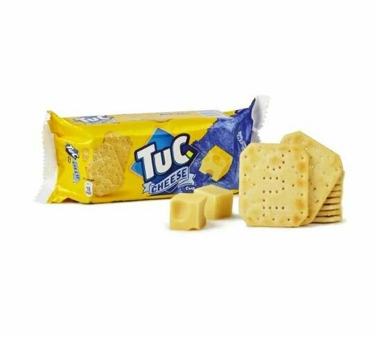 Крекер Tuc Cheezzz с сыром 100г - это хрустящее тонкое печенье аппетитного золотистого цвета со вкусом и ароматом сыра. У него нежная и рассыпчатая текстура, поэтому каждый крекер буквально тает во рту. Если вы не успеваете полноценно позавтракать или пообедать, эти крекеры помогут быстро насытиться и надолго избавят вас от чувства голода (в одной штучке - 18кКал). Мало кто знает, но TUC - это аббревиатура, появившаяся во второй половине ХХ века в Бельгии, и расшифровывается она как The Unique Cracker (уникальное печенье).