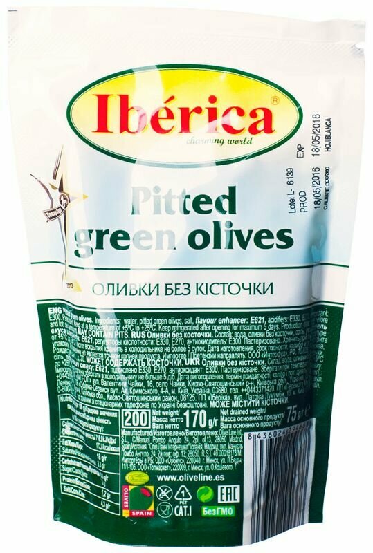 Оливки Iberica без косточки 170г - это оригинальный продукт из Испании, представленный известным брендом. Зеленые оливки относятся к традиционным испанским тапас и подаются в качестве закуски перед основными блюдами. Плотные мясистые плоды оливкового дерева используются для приготовления салатов, тушеного мяса, пиццы, добавляются в густые супы, используются и в других блюдах, придавая им пикантный аромат и более соленый вкус. Упакованы в пластиковый пакет. После вскрытия упаковки хранить в холодильнике не более 5 суток.