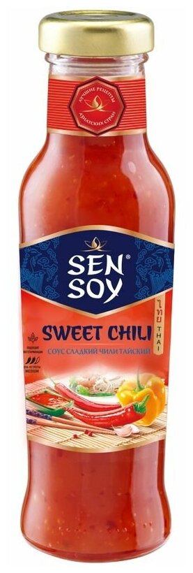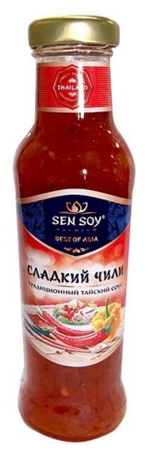 Соус Sen Soy Thai Chili Sweet 320г - это традиционный тайский соус, который принято подавать не только к основным блюдам (таким как мясо, курица, рыба и морепродукты, спринг-роллы, рис и лапша), но и с фруктами. Его жгучий вкус приятно балансирует с природной сладостью ананаса, папайи или манго. Даже самый простой продукт он сделает интереснее и наполнит его классическими ароматами азиатской кухни. Эту приправу полагается ставить на стол в маленьком соуснике или пиале, а не поливать блюдо сразу при подаче.