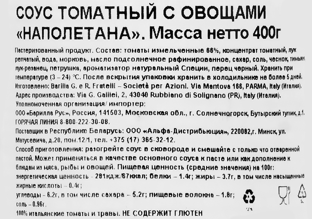 | Изготовитель | Barilla G. & R. Fratelli |