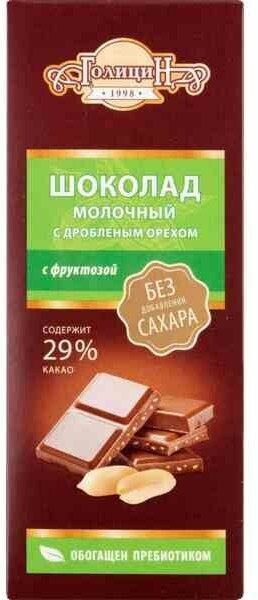 Шоколад Голицин молочный с дробленым орехом с фруктозой 60г Вишневогорская КФ