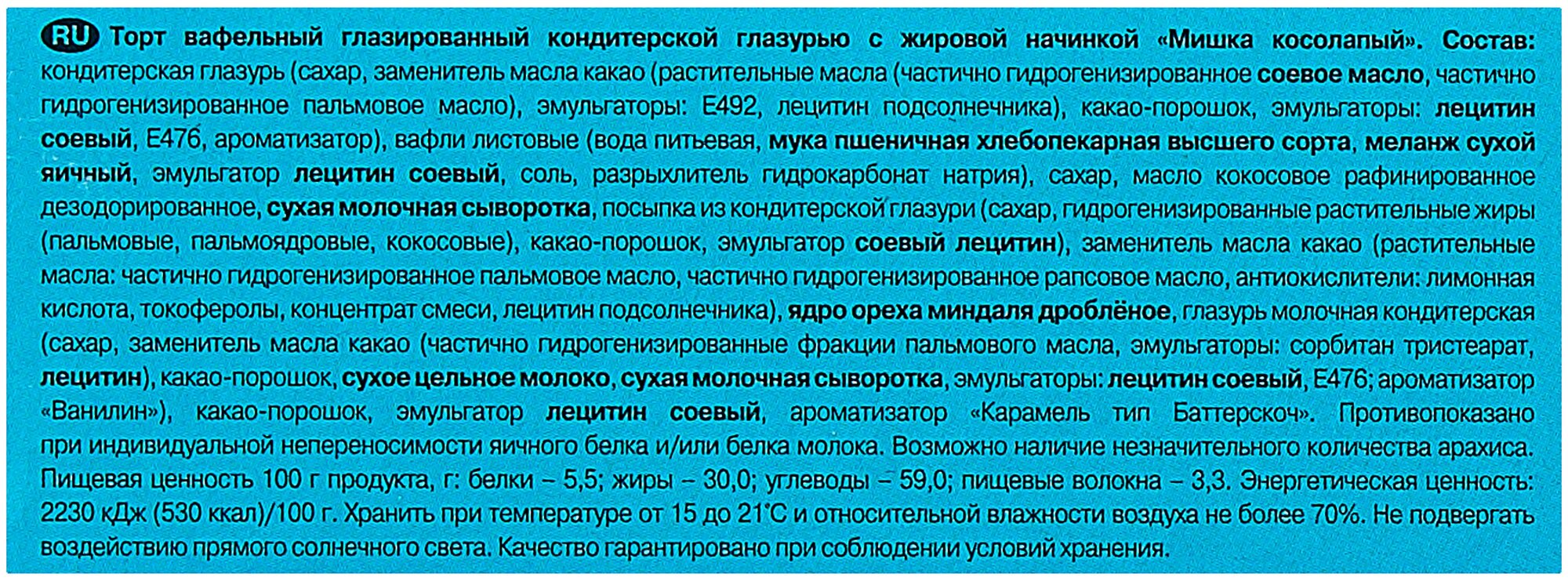 | Состав | вода питьевая, глазурь кондитерская (сахар, заменитель масла какао (частично гидрогенизированные растительные масла |