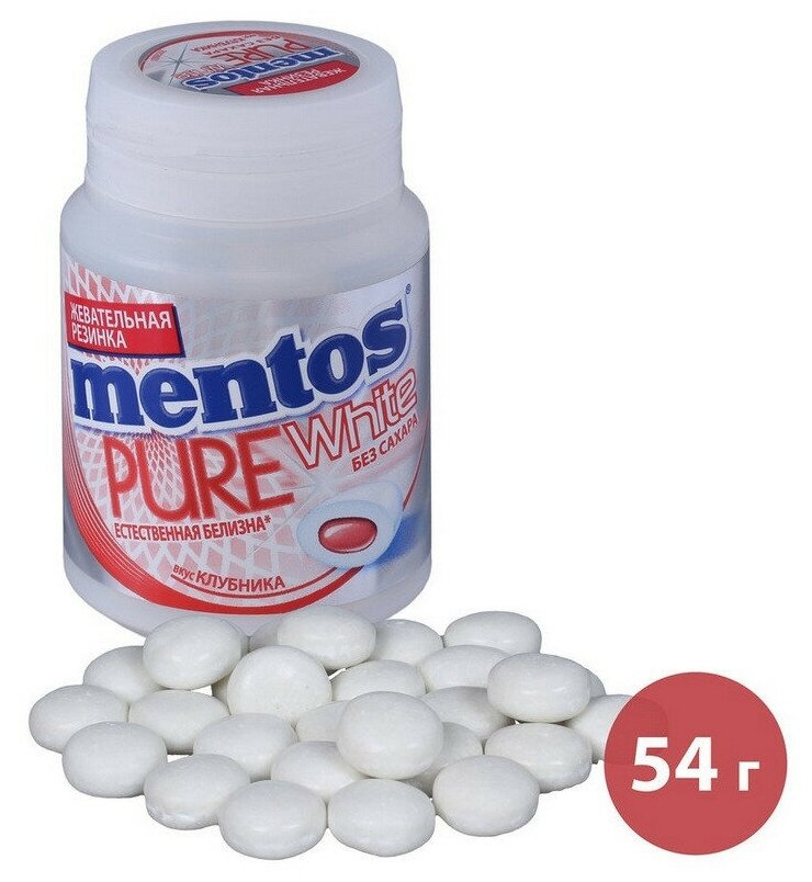 Жевательная резинка Mentos Pure White Клубника 54г Perfetti Van Melle