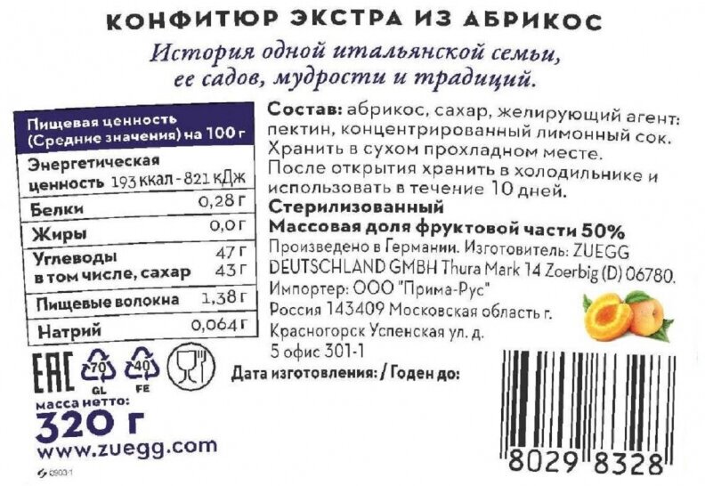 Сервис сравнения цен СкидкаГИД предлагает сравнить цены на товар «Конфитюр Zuegg Экстра Абрикос 320г»