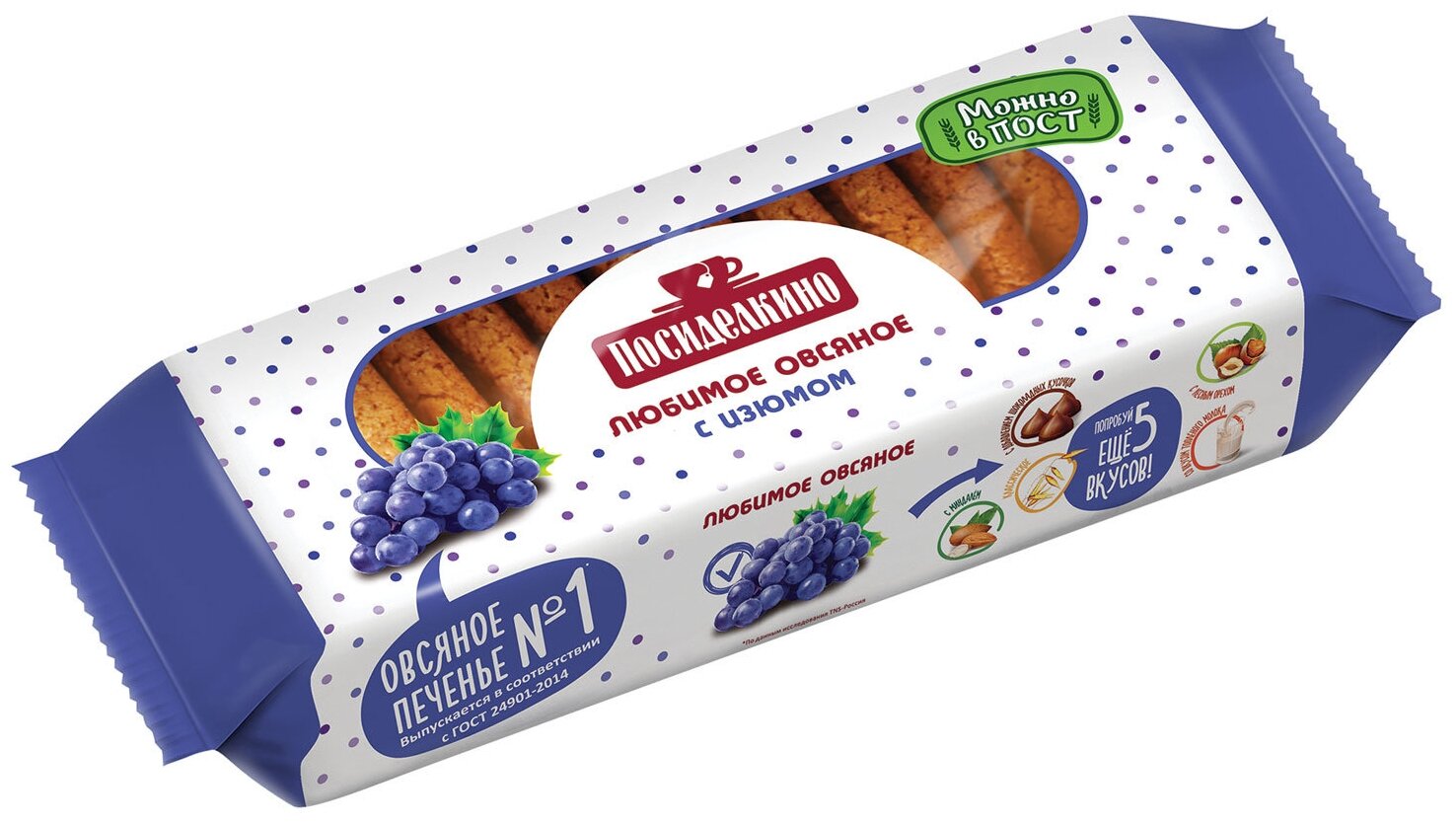 Печенье Посиделкино Овсяное с цельным изюмом 310г Кондитерское объединение Любимый Край