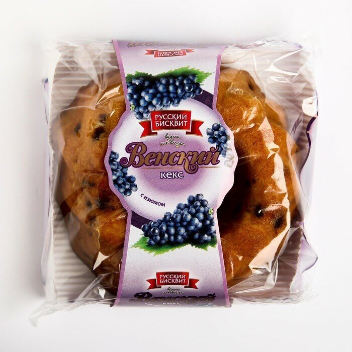 Нежный и ароматный Венский кекс с изюмом украсит праздничный стол и идеально подойдет для семейного или дружеского чаепития. Вас порадует не только привлекательная упаковка сладкой выпечки, но и ее приятный вкус. Кекс прекрасно сочетается с чашечкой ароматного кофе или чая.