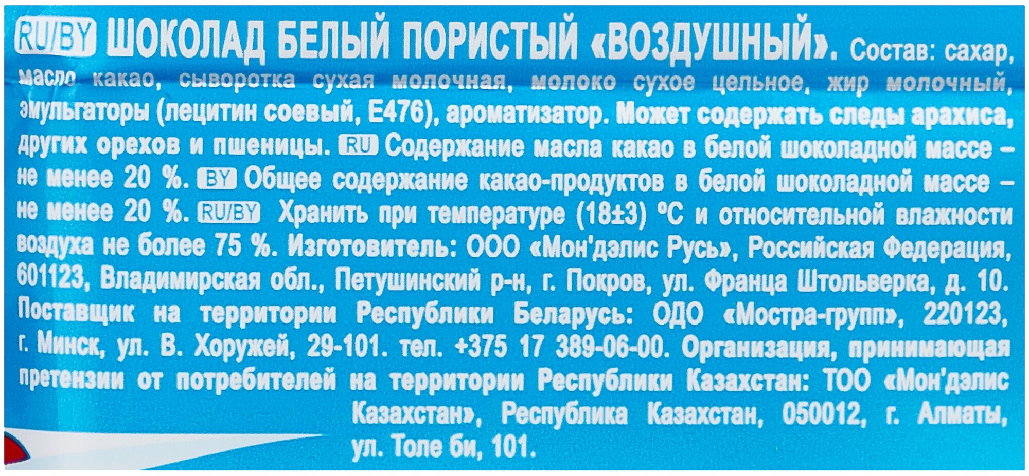 Шоколад Воздушный Белый 85г Мондэлис Русь