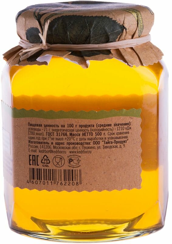 Мед Кедровый Бор Дальневосточный липовый натуральный 500г Тайга-Продукт