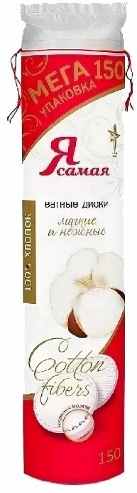 Двусторонние ватные диски Я самая Мягкие и нежные 120шт производятся из высококачественного длинноволокнистого хлопка и предназначены для гигиены лица и тела. Благодаря особой технологии "полировки водой" гладкая сторона диска хорошо впитывает остатки косметики и не оставляет ворсинок на лице. Рельефная сторона эффективно распределяет косметические средства (лосьон/ тоник/ молочко). Прошитый край препятствует расслоению и отлично держит форму диска. Упакованы в полиэтиленовый пакет с нитью для подвешивания.