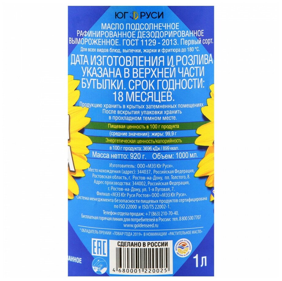 Масло подсолнечное Золотая Семечка 1.8л МЭЗ Юг Руси Ростов