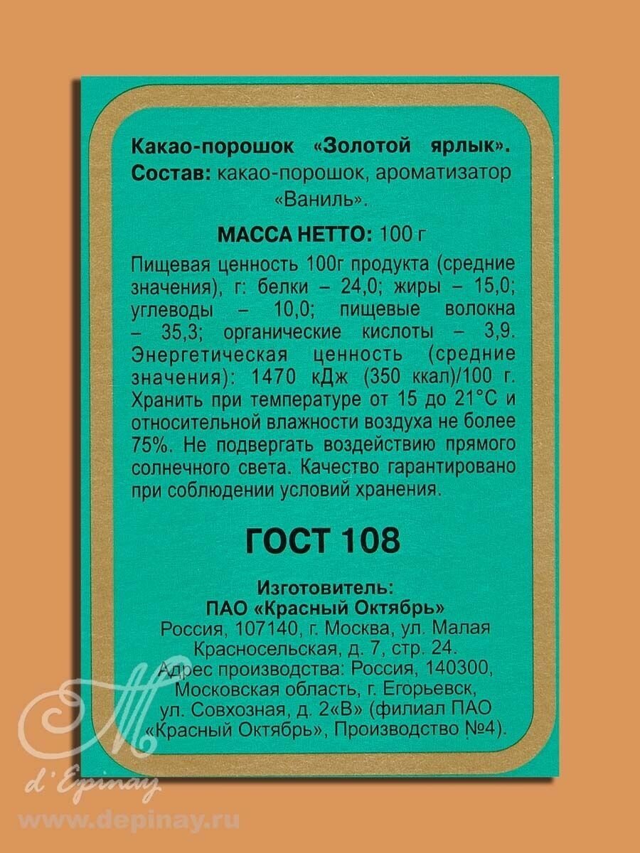 Какао-порошок Золотой ярлык 100г Красный Октябрь