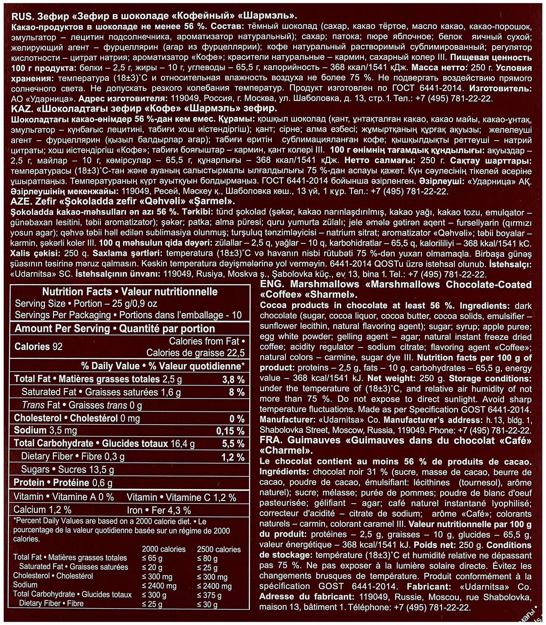 Зефир Шармэль Кофейный в шоколаде 250г Ударница