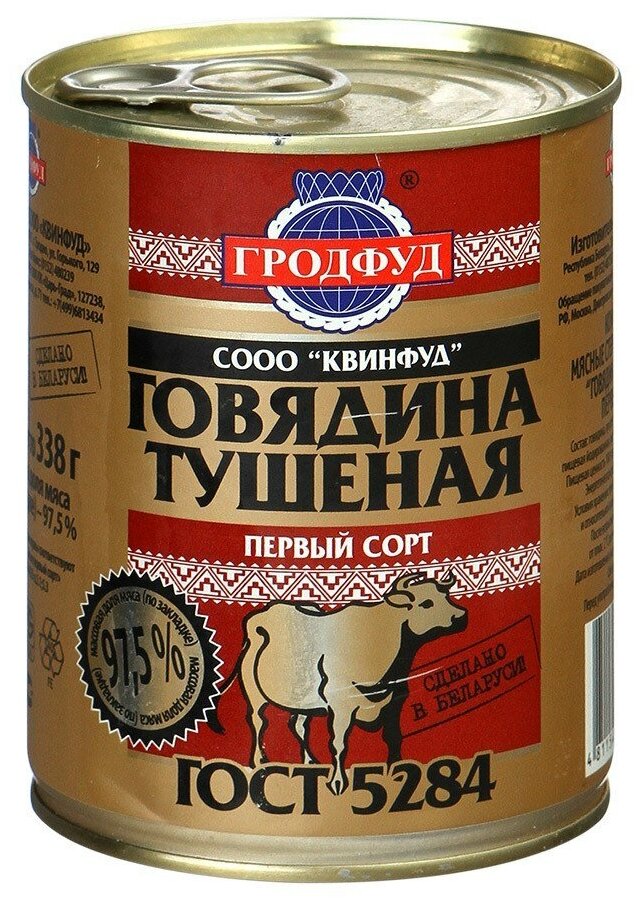 - Тушенка! Говядина высший сорт Гродфуд 338 гр. Беларусь!