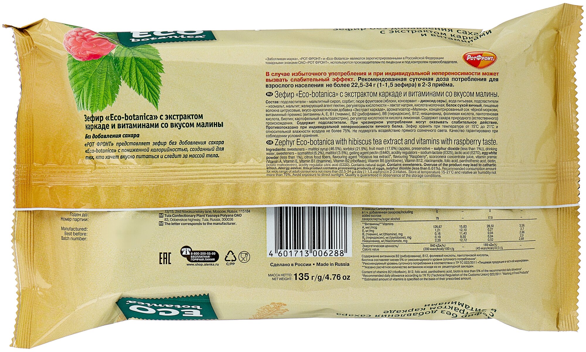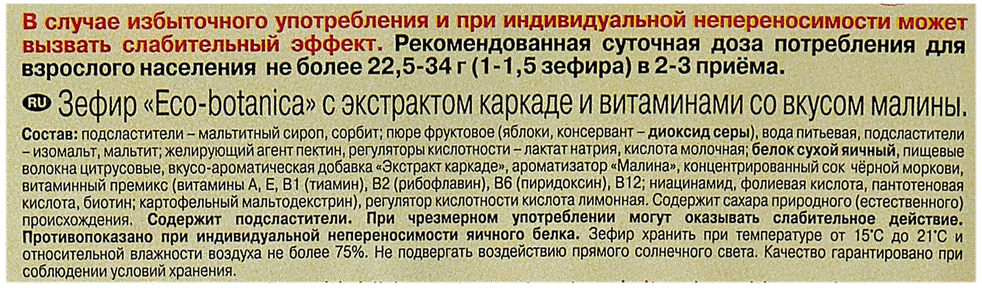Зефир Eco Botanica с экстрактом каркаде и витаминами со вкусом малины 135г Рот Фронт
