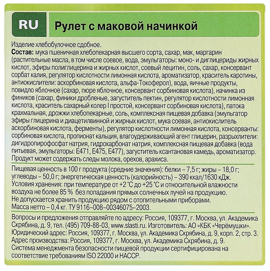 Рулет Сдобная Особа с маковой начинкой 400г КБК Черемушки