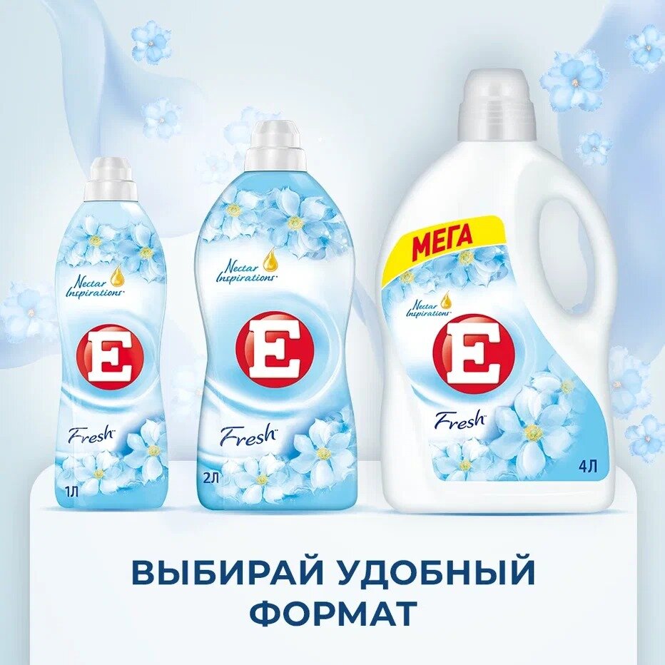 "Кондиционер для белья E Fresh 1000 мл бережно и деликатно ухаживает за любой одеждой. Благодаря современной формуле из катионных ПАВ и глицерина кондиционер Фреш обладает эффективными преимуществами. - Благодаря кондиционеру белье будет мягким и приятным на ощупь. - Средство E Fresh дарит белью свежесть и приятный аромат, который сохраняется длительное время. - Кондиционер E Fresh облегчает глажку и обладает антистатическим эффектом. Почему современные хозяйки отдают предпочтение средству для белья E Fresh? - Кондиционер универсально подходит для ополаскивания всех видов тканей. - Средство не содержит хлороформа, поэтому не вызывает аллергии. - Перед применением средство E Fresh не требуется разбавлять водой. - Средство для ополаскивания белья можно использовать при машинной и ручной стирке. - Все рекомендации по эффективному использованию кондиционера можно прочитать на упаковке. - Кондиционером можно ополаскивать детские вещи."Дизайн в ассортименте.