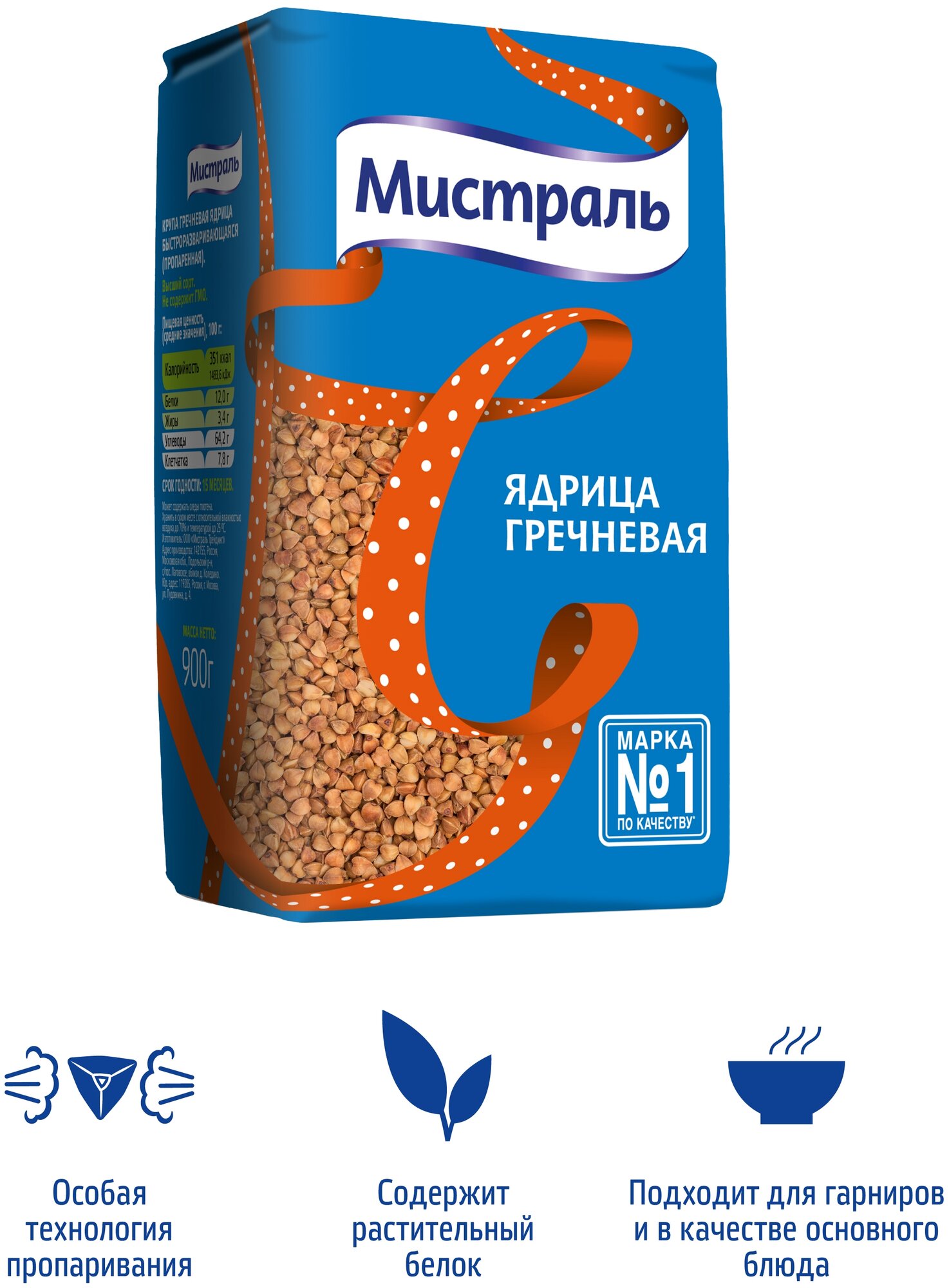 Крупа Мистраль Гречневая ядрица 900г Мистраль Трейдинг