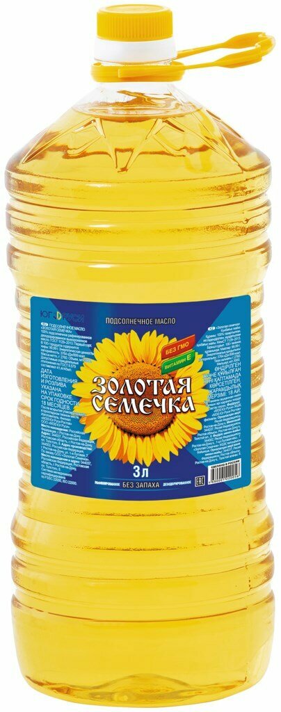 Масло подсолнечное Золотая Семечка 1л производится из отборных семян подсолнечника и идеально подходит для домашней кухни. Рафинированное, дезодорированное, вымороженное. Очищено от примесей и не имеет запаха. Можно использовать как для заправки салатов и приготовления соусов, так и для термической обработки, включая выпечку и фритюр (максимум при 180°С). Хороший источник витамина Е. Не содержит ГМО. Производится в Ростовской области. Продукт многократно становился лауреатом премии Товар года.