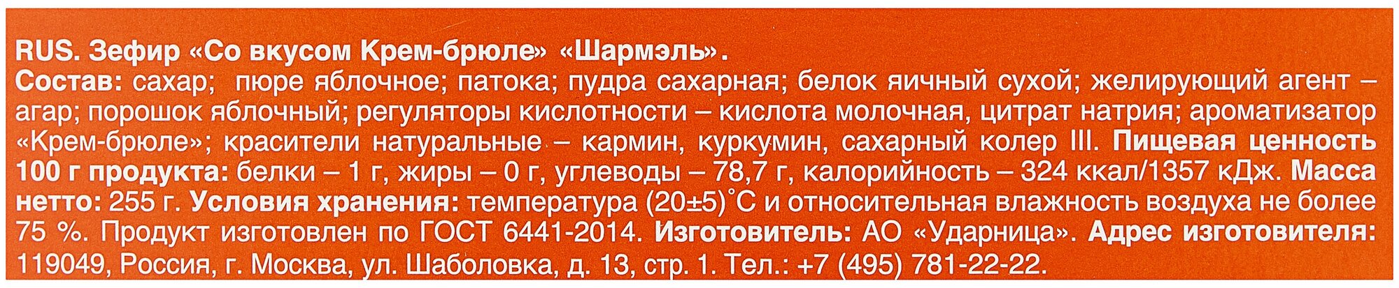 Зефир Шармэль со вкусом Крем-Брюле 255г Ударница