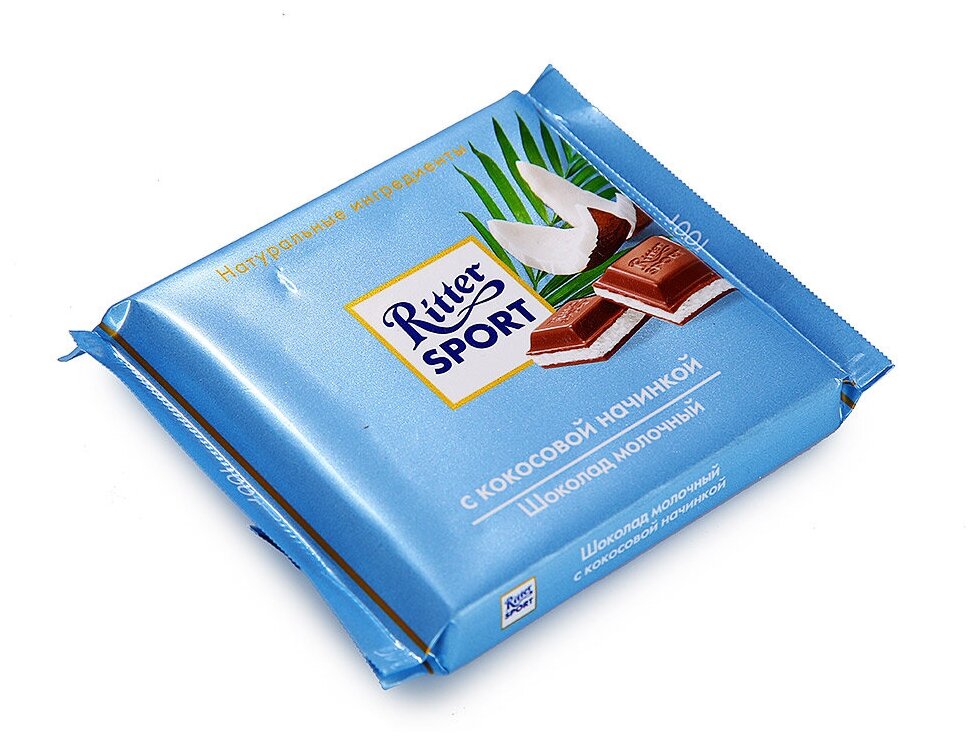 Шоколад Ritter Sport Молочный Кокос 100г - это великолепный молочный шоколад с начинкой из экзотического молочно-кокосового крема и хрустящей кокосовой стружки. Он выполнен в традиционной для бренда квадратной форме и разделен на 16 одинаковых квадратиков. Кстати, в таком виде шоколад начал выпускаться лишь в 1932 году, спустя 20 лет после основания семейной фабрики Риттер. Идея была в том, чтобы плитка помещалась в карман любой спортивной куртки, а весила столько же, сколько и обычная прямоугольная шоколадка. Позднее оригинальной стала не только форма, но и уникальная упаковка Knick-Pack, которая с легкостью вскрывается, когда вы надламываете плитку.