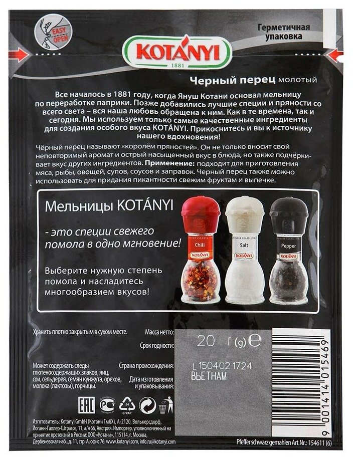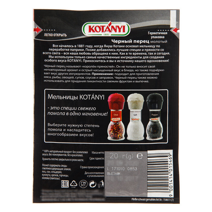 Сервис сравнения цен СкидкаГИД предлагает сравнить цены на товар «Приправа Kotanyi Перец черный молотый 20г»