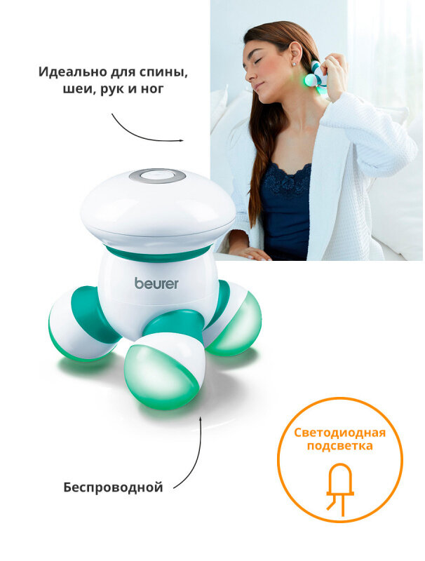 Красота и здоровье Beurer 1057626 Если вы хотите иметь под рукой простой, безопасный и эффективный массажный прибор - выбирайте BEURER MG16. Это крошечный массажер, который можно использовать где угодно - дома, в офисе или в дороге. Он подходит для вибрационного массажа спины, шеи, рук и ног. Самое главное в том, что использование данного устройства доступно любому новичку благодаря компактным габаритам, продуманной конструкции и легкости управления.