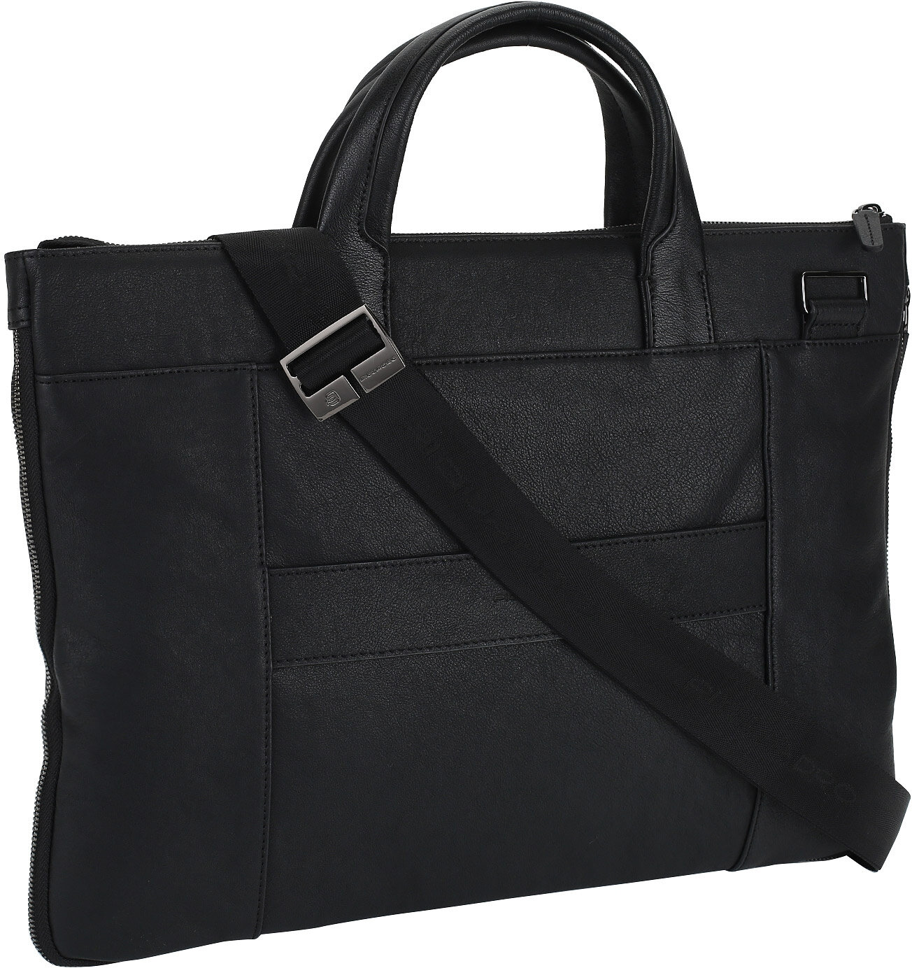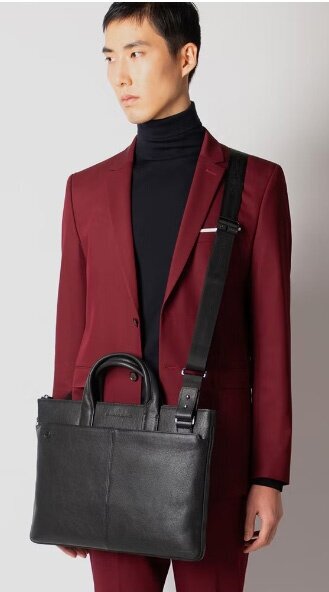 | Прочие особенности и свойства | Кожаная мужская сумка для ноутбука со съемным плечевым ремнем из новой коллекции Piquadro Black Square. Сумка имеет одно отделение, отсеки для ноутбука и планшета, кармашки для письменных принадлежностей и телефона. Молния по периметру позволяет увеличивать ширину сумки до 10 см. Выполнена из мелкозернистой кожи |