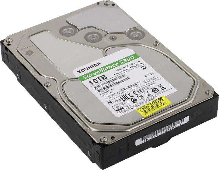 Жесткие диски и сетевые накопители Toshiba 3.5-дюймовый жесткий диск для систем видеонаблюдения Toshiba S300 разрабатывался и испытывался для круглосуточной надежной эксплуатации в системах видеонаблюдения. При его производстве основной упор делается на скорость, высокую емкость и увеличение времени хранения данных. S300 поддерживает до 64 камер высокого разрешения, с которых вы сможете записывать и анализировать каждый кадр. Объем свободного пространства имеет принципиальное значение, когда нужно непрерывно снимать все происходящее на протяжении длительного времени. Емкость 10 ТБ позволяет регистрировать и воспроизводить события в режиме реального времени с высоким разрешением, поддерживая идентификацию объектов и распознавание лиц.