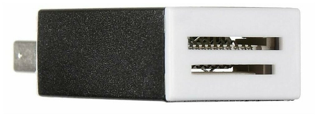 Предназначен для подключения компактных накопителей информации к компьютеру или мультимедийному устройству. Он работает без предварительной установки драйверов и не нуждается в подключении к внешнему источнику питания. Гаджет распознаёт множество видов карт памяти – в том числе SDHC, microSD, M2 и MemoryStick.