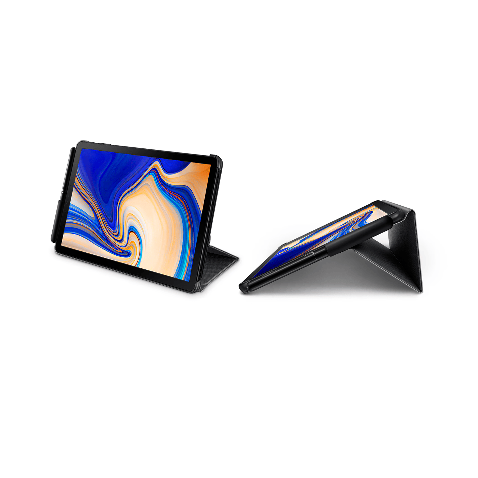 Стильная защита Новый чехол для Galaxy Tab S4 отличает более тонкий и легкий дизайн со стильным мягким матовым покрытием для максимального удобства и комфорта. Оптимальная эффективность Этот практичный, приятный на ощупь чехол легко трансформируется в подставку, позволяющую установить планшет под удобным углом для комфортного чтения или просмотра фильмов.