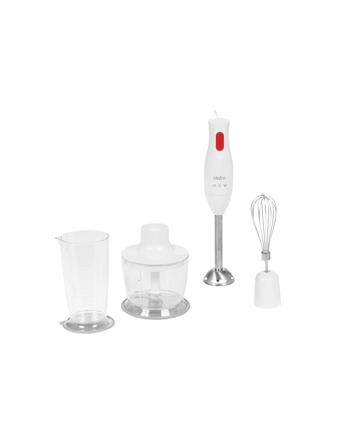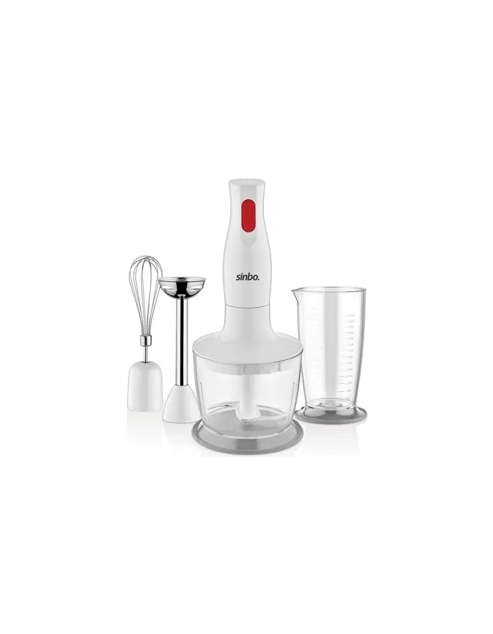 | Прочие свойства и особенности | Погружной блендер SINBO SHB 3147 – это находка для каждой хозяйки. Выполнен в стильном дизайне из пластика белого цвета – он идеально дополнит дизайн любой кухни. При своей полной комплектации, состоящей из:,- ручки блендера с мотором мощностью в 400 Вт;,- погружной насадки, основная часть которой выполнена из нержавеющей стали, что позволяет перебивать продукты даже в процессе готовки, а высокопрочные ножи позволяют перебить даже твердые и вязки продукты;,- металлического венчика;,- чаши измельчителя объемом 600 мл и плотно закрывающейся крышкой, что позволяет хранить в ней продукты в холодильнике; ножи также выполнены из стали класса 304 – нержавеющий металл высокой износостойкости;,- и мерного стакана объемом на 700 мл, выполненного из прозрачного пластика с нанесенной маркировкой в мл.,Блендер легко управляем, благодаря удобной кнопки включения прибора, выполненной в красном цвете, которая запускает мотор сразу на полную мощность.,Для более комфортного использования, дно мерного стакана и чаши измельчителя оснащены нескользящей основой, что позволяет четко фиксировать тару в процессе измельчения. Питание блендера SINBO SHB 3147 осуществляется от сети 220 В переменного тока, а благодаря достаточно длинному шнуру, пользователь не прикован вплотную к розетке и может свободно размещать прибор на рабочей поверхности. |
