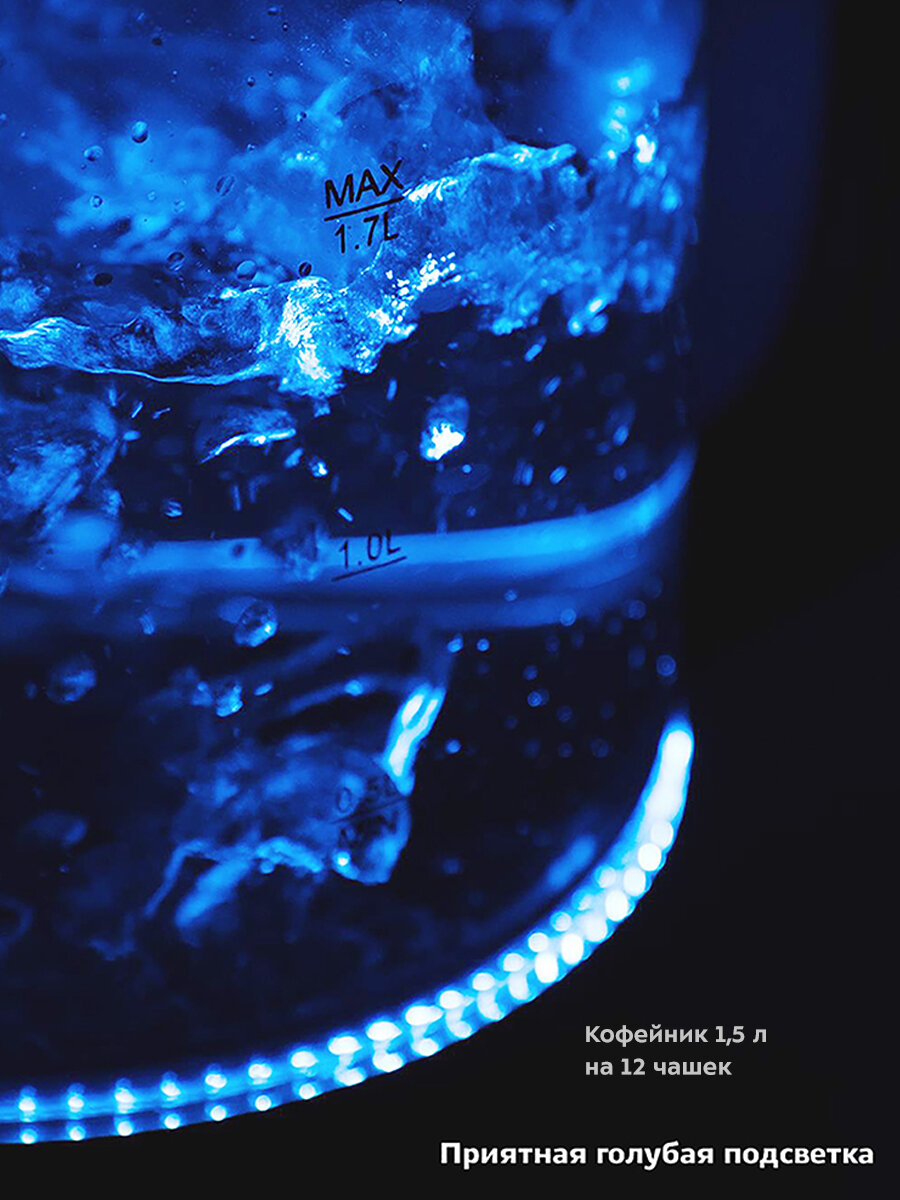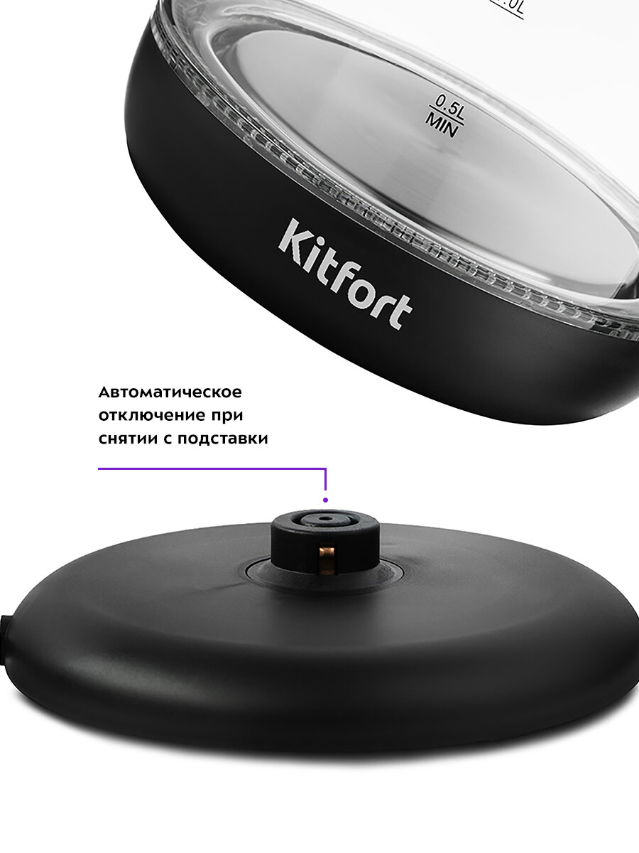 Kitfort КТ-625-6 Электрический чайник Kitfort КТ-625-6 в стильном корпусе из высококачественного термостойкого стекла с эффектной внутренней подсветкой создаст особую атмосферу и подчеркнет индивидуальность вашей кухни. Мощный нагревательный элемент позволяет вскипятить 1,7 литра воды за считанные минуты. Широко открывающаяся крышка обеспечивает удобный набор воды и легкую очистку прибора.