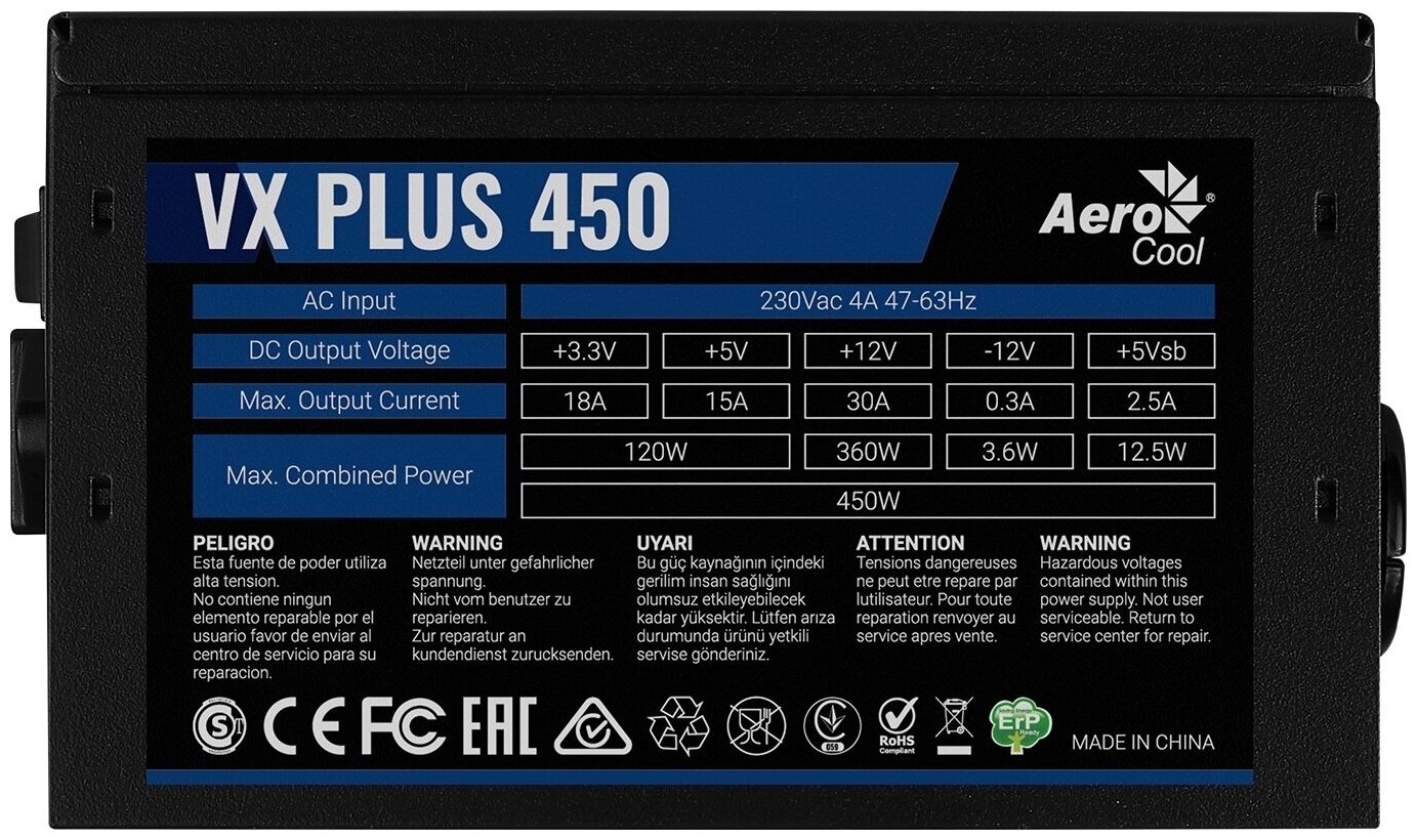 - Блок питания AEROCOOL VX PLUS 450 W (450 ватт)