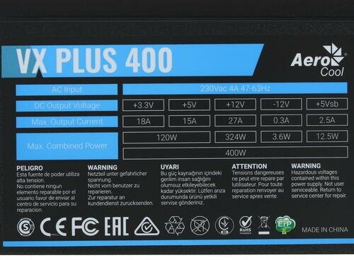 Блок питания AEROCOOL 400Вт 120мм черный retail VX-400 PLUS