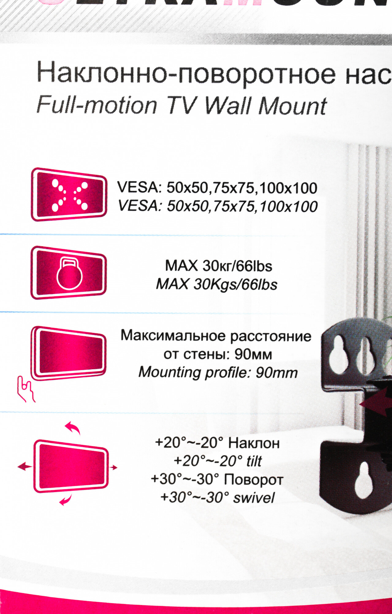 | Дополнительно | Диагональ:13"-27",Нагрузка:30 кг |