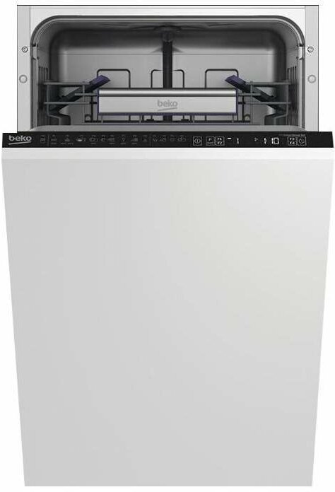 Эта посудомоечная машина Beko очень вместительная и вмещает до 10 наборов посуды.
