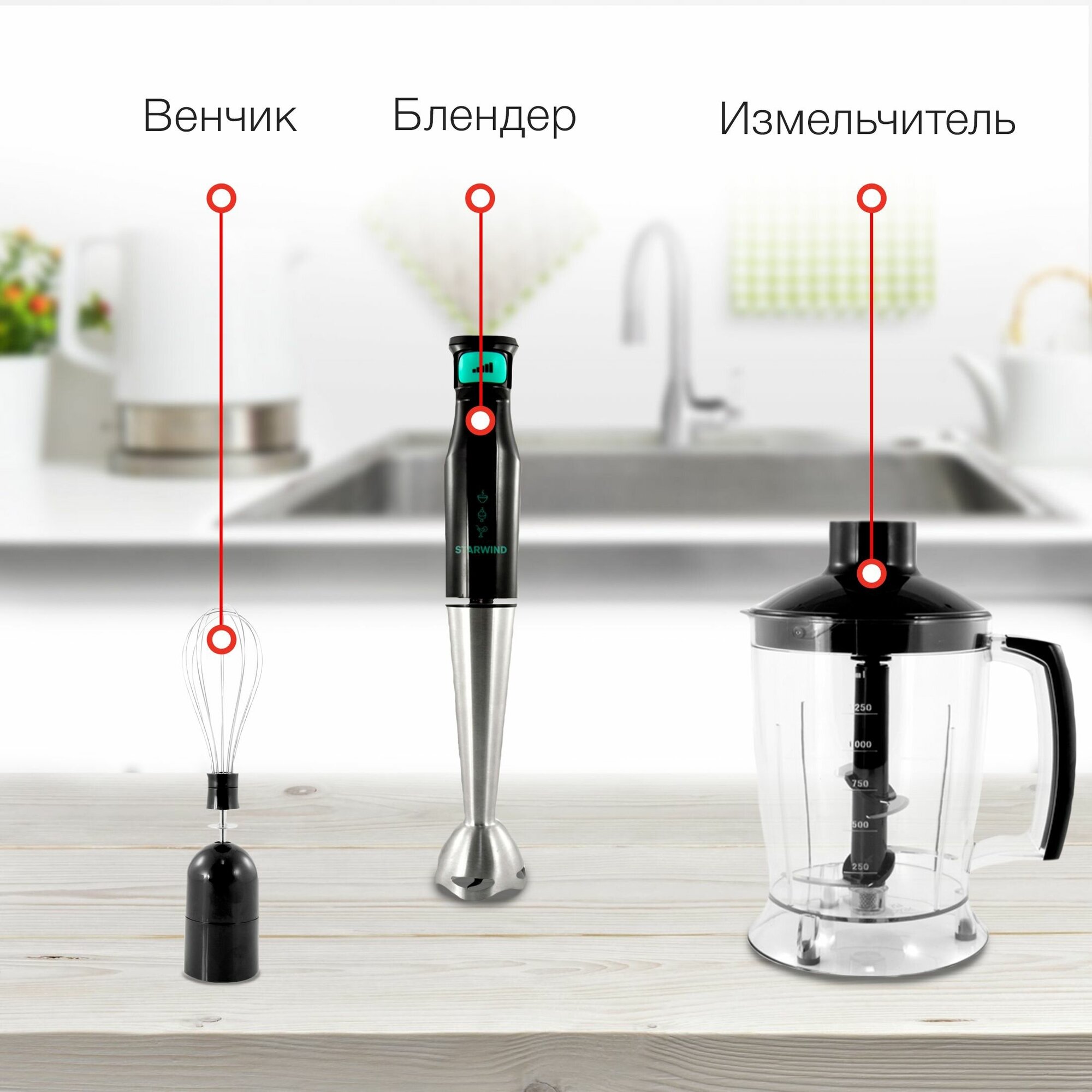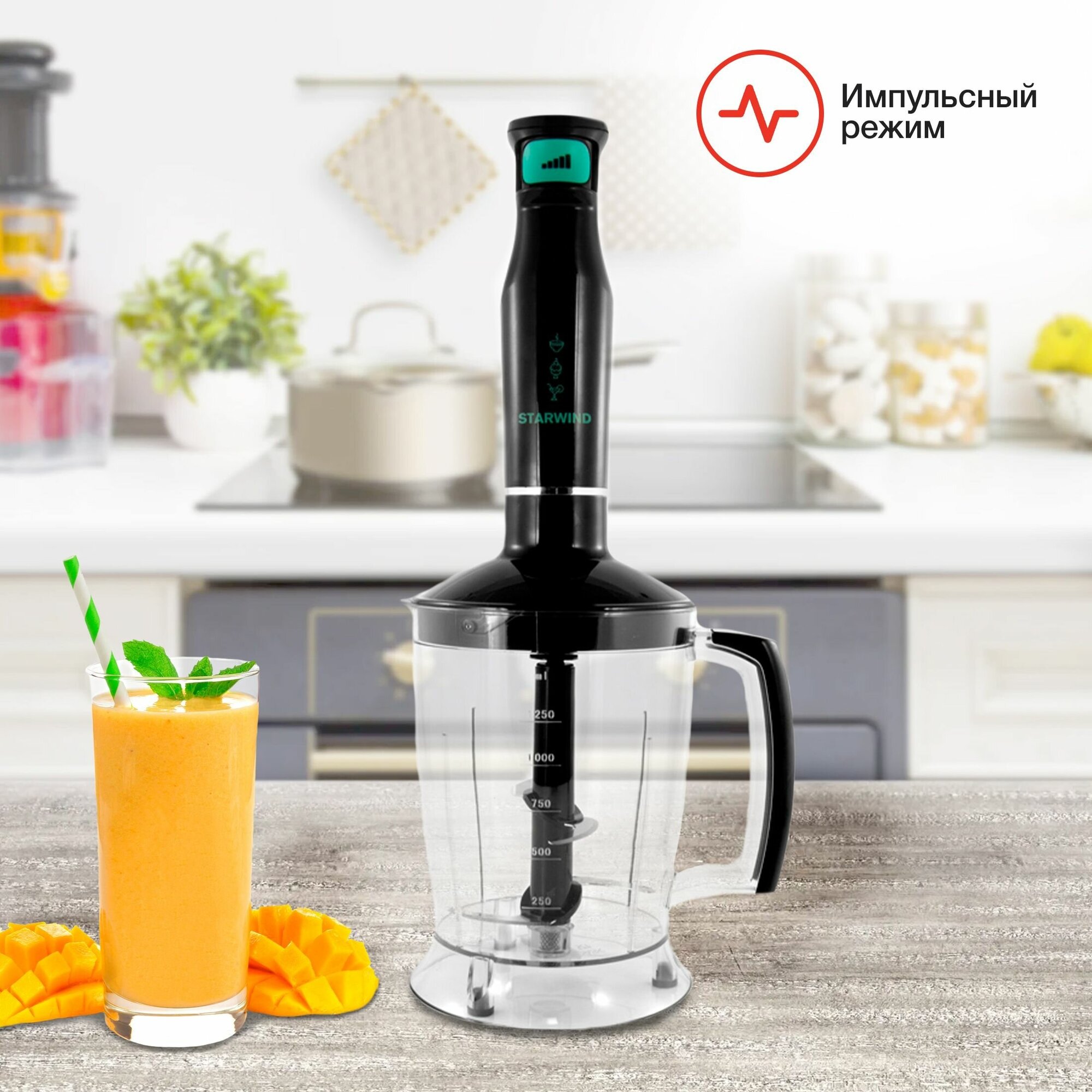 | В комплекте | венчик, измельчитель (1.25 л), мерный стакан |