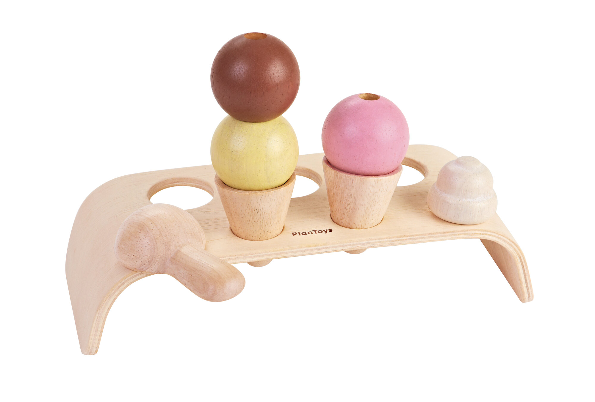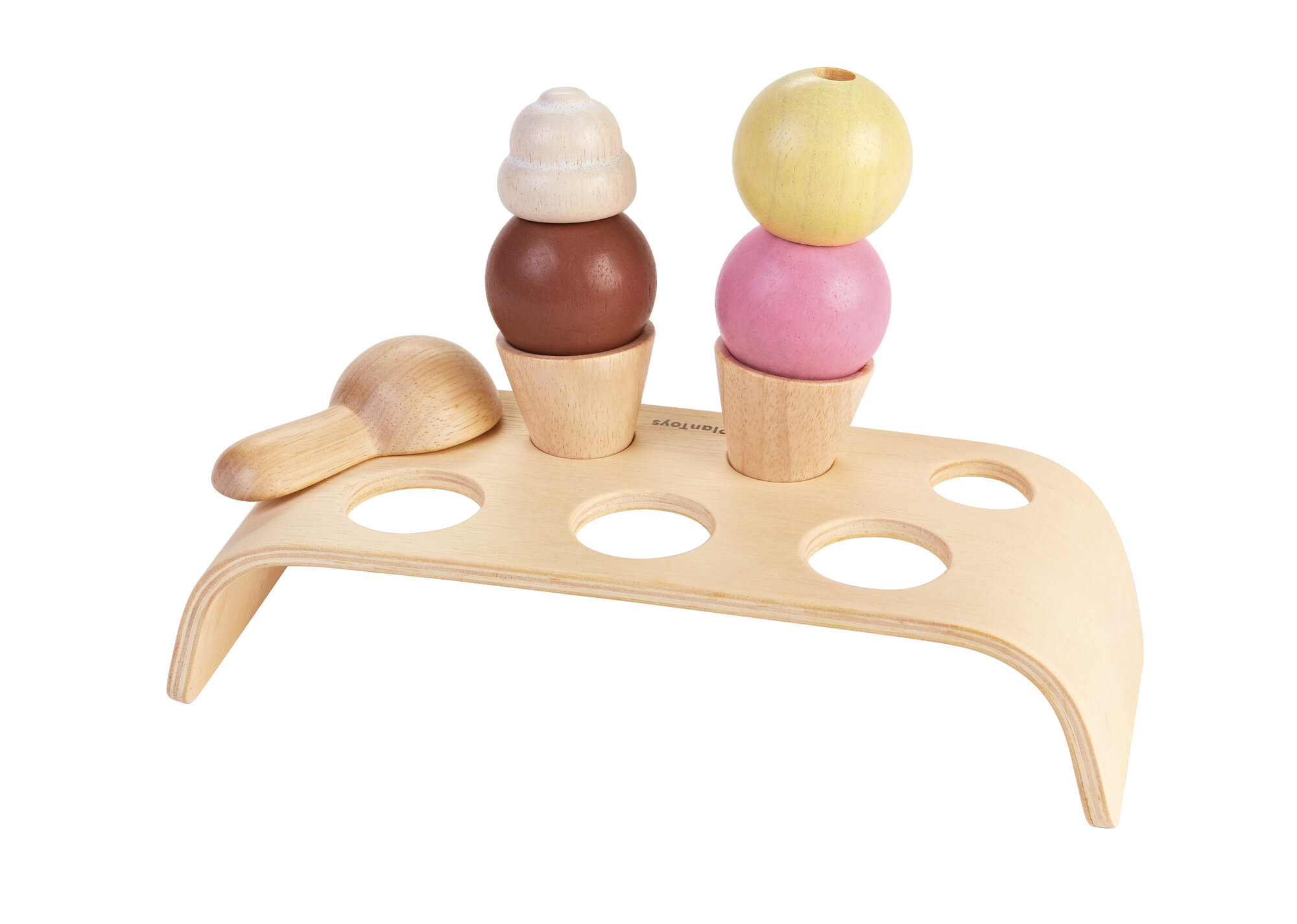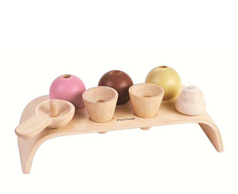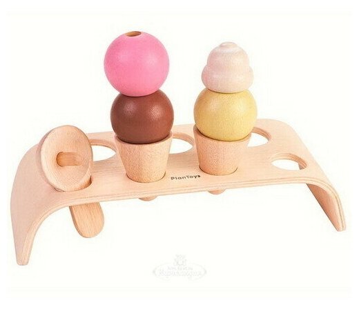 Игровой набор Мороженое от Plan Toys — это деревянный конструктор, с помощью которого можно сделать мороженое.В набор входит подставка, два рожка, три шарика, шарик с взбитыми сливками и ложечка. Набор можно использовать в ролевых играх (кухня, магазин). Игровые наборы благоприятно влияют на раннее развитие ребенка, стимулируют развитие логического мышления, мелкой моторики.