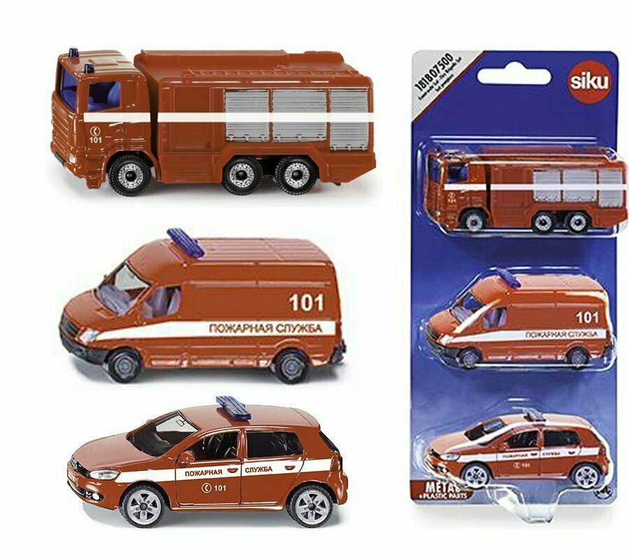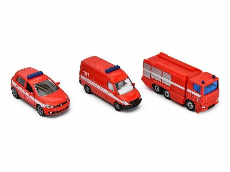 Siku Набор машинок Пожарная служба непременно порадует любителей игровых моделей. Особенности: В набор входит 3 пожарные машины Модельки выполнены из металла с использованием высококачественного пластика.