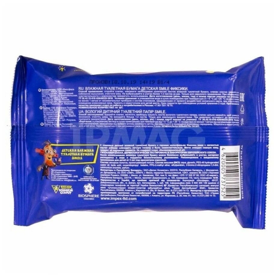 Бумага туалетная бумага Smile влажная Фиксики 44 шт. Smile Baby (118739)