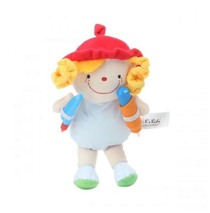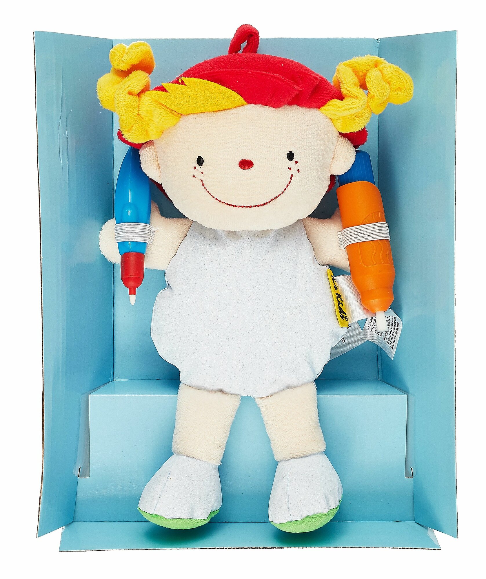 Очень часто родители сталкиваются с тем, что ребенок воплощает собственные творческие идеи, рисуя на обоях и мебели. Проблема будет решена, если подарить малышу замечательный набор для творчества – Джулия «Что носить» от торговой марки K'S Kids! Набор для детского творчества состоит из улыбчивой куколки, выполненной из текстиля. У Джулии желтые волосы и красный головной убор. Ее одежду можно менять каждые десять минут. Понадобится лишь вода и две специальные емкости, напоминающие фломастеры. Они оснащены грифелем, с помощью которого возможно наносить на куклу рисунки. После того, как вода высохнет, можно смело моделировать следующий наряд Джулии.