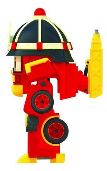«Рой мега трансформер» - игрушечная копия одноименного героя, которой ваш ребенок несказанно обрадуется. Всего за несколько простых поворотов машинка легко превращается в интересного робота (высота 15 см). У Роя подвижная голова, на которой находится проблесковый маячок – включить его можно одним нажатием. Ручки выдвигаются (и надежно фиксируют аксессуары), ножки очень устойчивы. Пожарный кран поднимается и опускается, когда Рой собран в машинку.