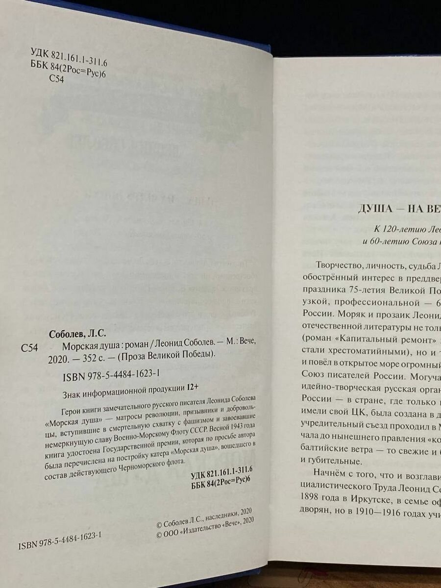 Книга: Морская душа (Соболев Леонид Сергеевич); Вече, 2020