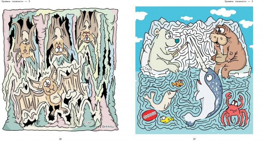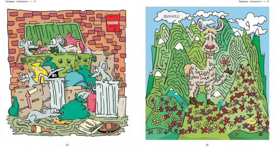 Эти лабиринты взорвали мозг родителей. Это же нужно в обычной картинке сфокусироваться не на сюжете, а на линиях, которыми очерчены рисунки и понять, что это лабиринт, дорожки. Шикарный подарок любителям лабиринтов, очень полезно и весело. Разгадка не сложна, но пути ее достижения многочисленны