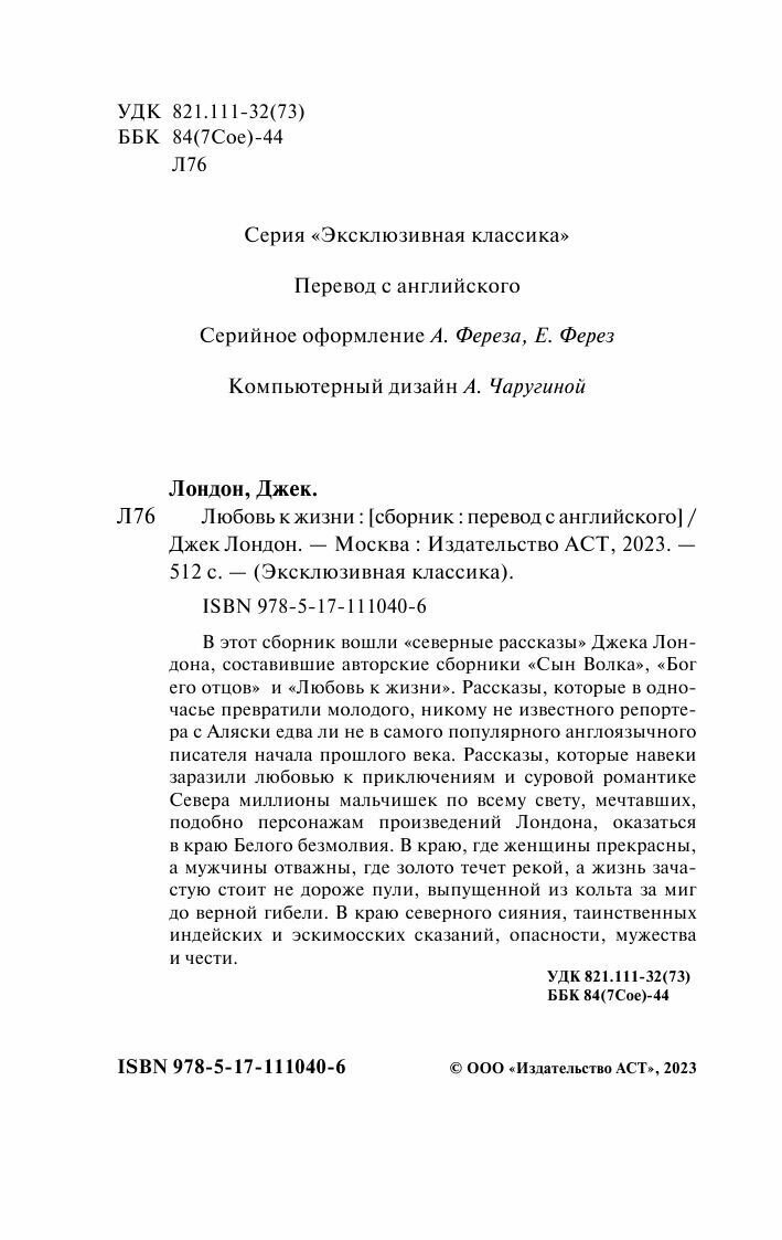 Книга: Любовь к жизни (Джек Лондон); ФТМ, 2022