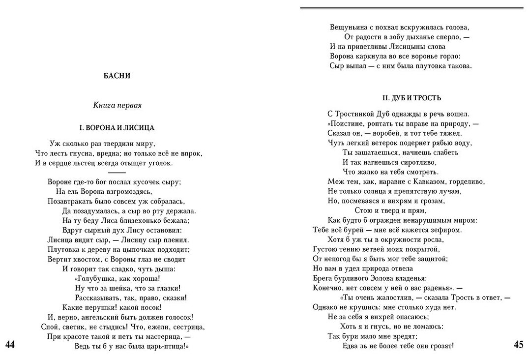 Басни И. А. Крылова, получившие мировое признание, вошли в сокровищницу русской литературы, в них сошлись все грани таланта писателя, открылось его редкое поэтическое мастерство. В данном издании представлены не только знаменитые басни, но и подражания псалмам, а также избранные стихотворения.