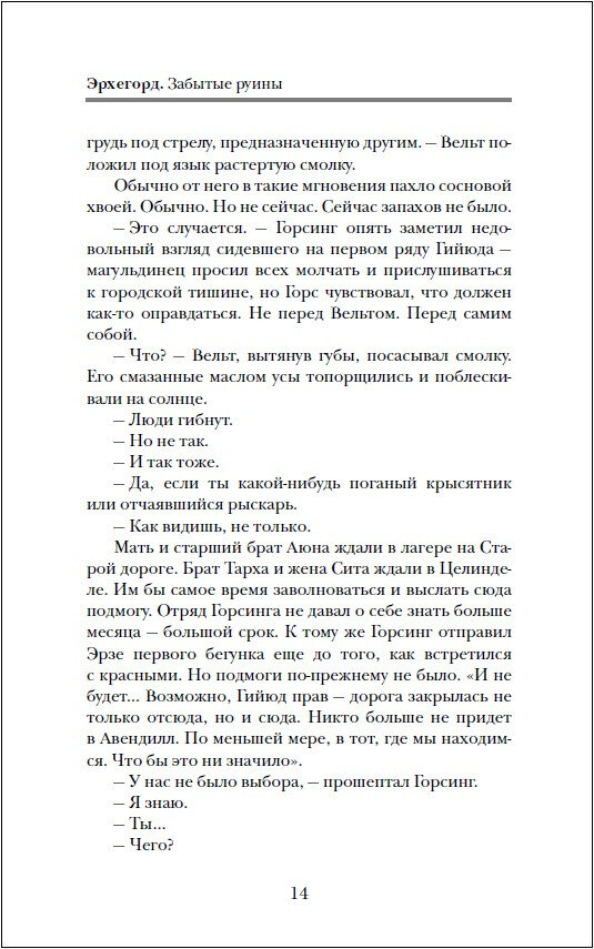 Кажется, именно к этой книге автор по-настоящему расписался, аж дрожь пробирает. Мне очень нравится этот цикл своей загадочностью, атмосферой, раскиданными тут и там намёками на… что-то. Очень надеюсь, что намёки и загадки не пропадут зря, потому что недосказанность может быть хороша, но в меру. В конце серии что-то должно быть раскрыто настолько, чтобы читатель мог сказать; «Ааааа, так вот в чём тут дело!», а не продолжал бы в недоумении тереть лоб. Надеюсь на продолжение, в котором нам откроется новая грань необычного мира «Эрхегорда».